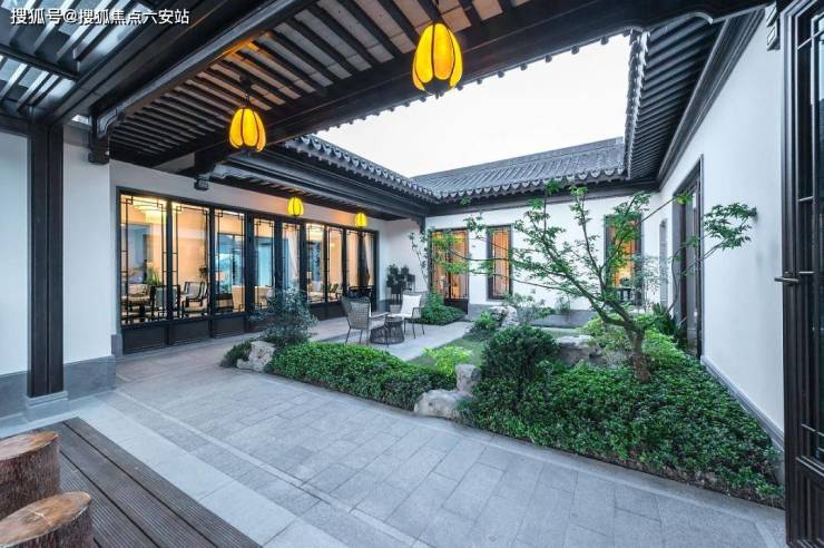 打造移步换景的江南园林雅境,呈现“堂、巷、院、宅”四进式礼序院落。,将千年东方礼序融于一院。结合框景、对景、漏景等丰富的造景设计,营造“移步换景、如在画中”之感,汇集杭州桃李春风、安吉天使小镇等蓝城经典中式合院营造经验之大成,专为当代名人雅士打造有天有地有花园的江南院落生活。