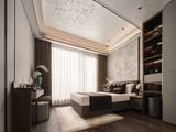 三层是主卧起居,这是主人的私密天地。优雅的悬浮设计与精美的弧角结构式共同构成了舒适而尊贵的睡眠体验。忙碌一天趁着休息时光,在主卧的小吧台拿一瓶自己最爱的红酒,两人落座在舒适的休闲椅上,趁着月色迷人,听着虫鸣小酌一杯。