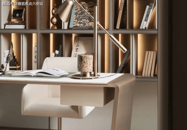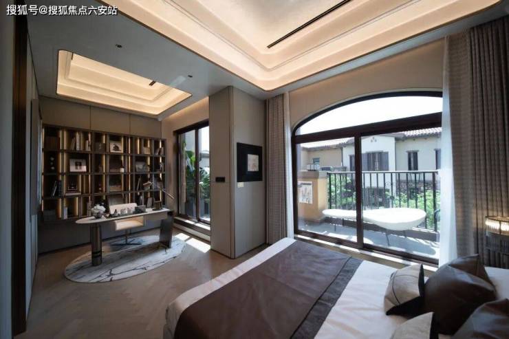 睡眠区与书房联通,书房不仅仅是一处工作空间,也是陶冶情操的艺术空间,光影落入室内,自然与灵动交织的空间里,让思绪得到更充分的延展。
