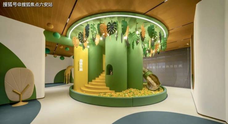 利用简约的线条、弧度和大量自然光线的投入,来强调空间的穿透力。森系的色调,错落的平衡杆、探首的长颈鹿,阳光倾泻而下,剥离了浮华与繁复,仿佛真的置身于葱郁蓬勃的丛林,吸引孩童尽情地攀爬、躲藏、探索。