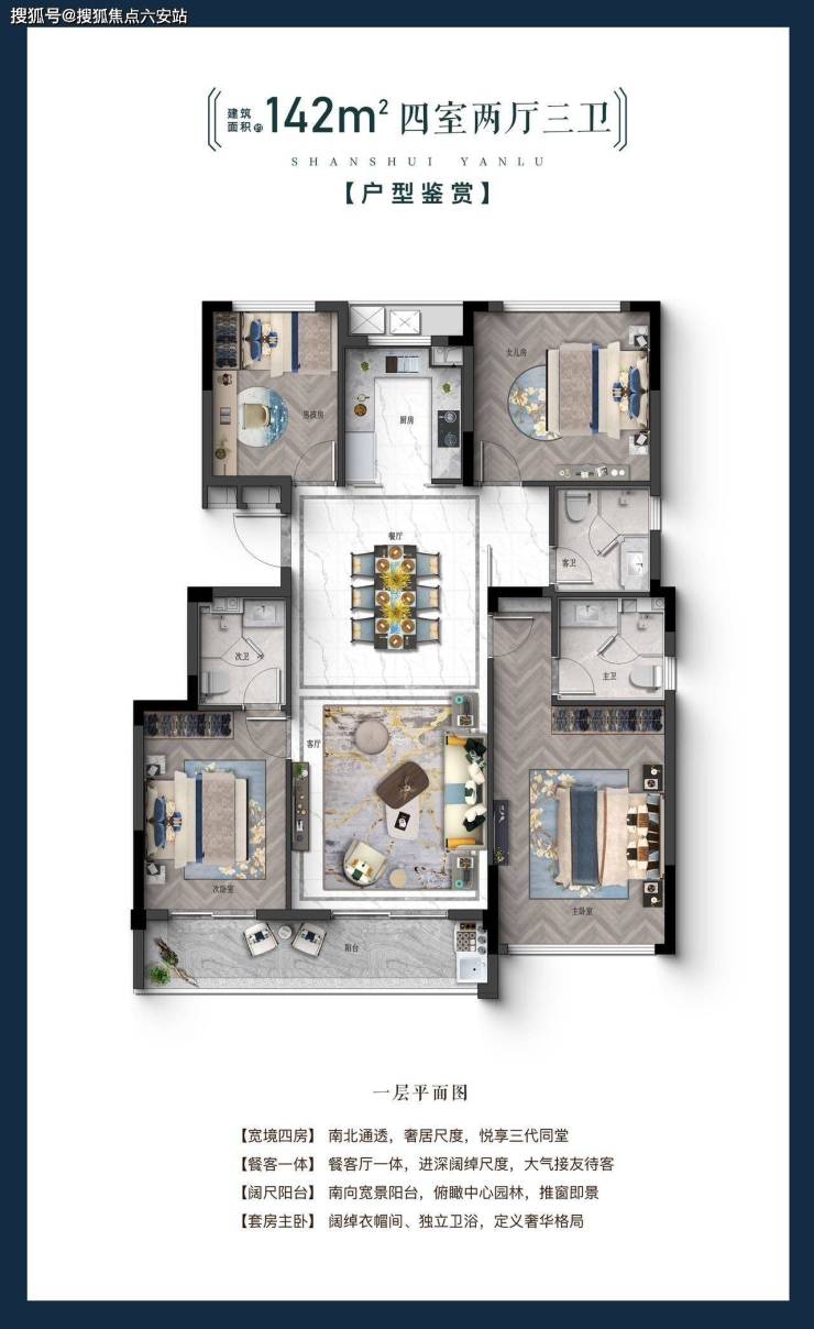 户型亮点:LDKB一体化布局,主卧套房配备独立衣帽间+观景飘窗;