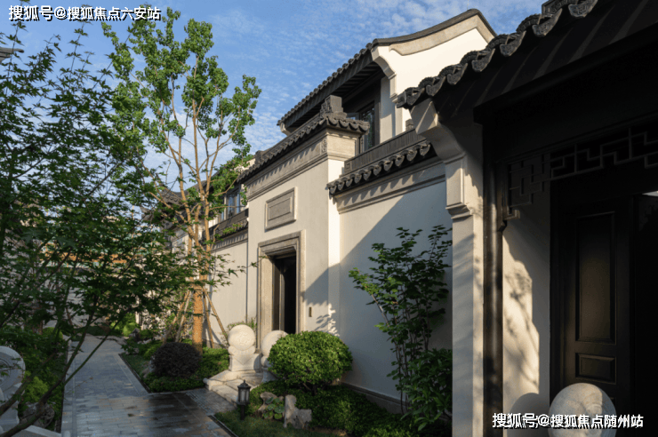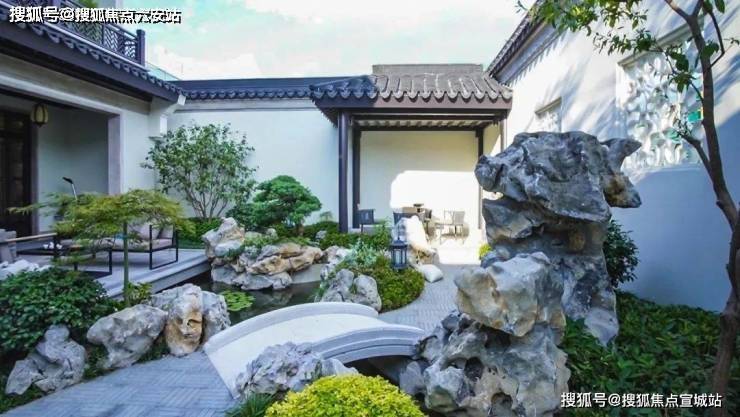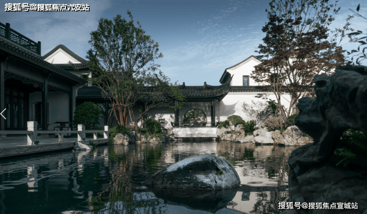 所以我们才能看到如此让人心动的作品:街巷内部采用形式多样的洞门,分隔隐隐绰绰的疏花扶木,让归家之路充满诗意;走进院门,廊桥竹坞,山池锦鲤,假山廊亭,小桥流水;再看建筑,青砖黛瓦、花格窗,高低错落的马头墙……中式传统元素一一再现。