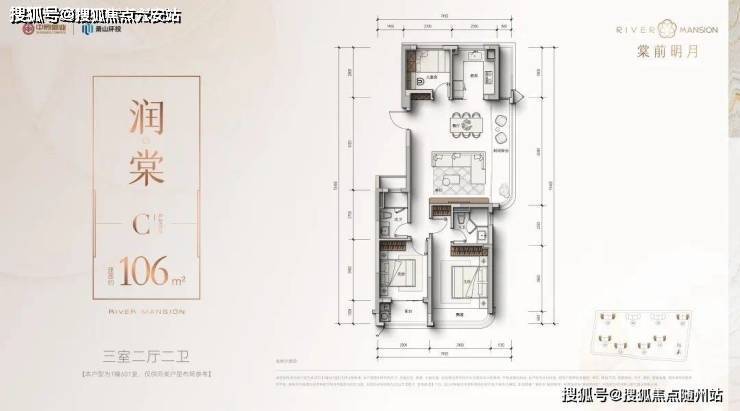 106㎡边套三房:6米横厅+270°全景窗,得房率超90%,主卧配置270°曲面飘窗,空间尺度堪比市面125㎡户型。