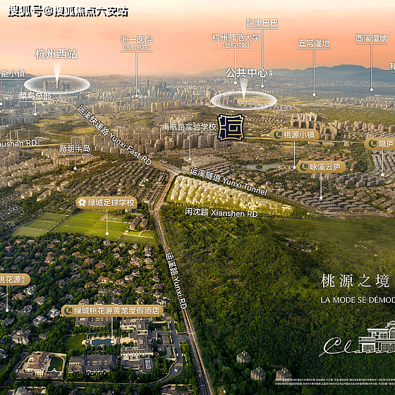 项目占据城西黄金枢纽,承接未来科技城产业外溢红利,与绿城桃花源(中国十大豪宅之一)仅一街之隔。板块内高能产业集聚,菜鸟总部、VIVO全球AI研发中心等企业云集,高净值人群密集,资产保值增值潜力显著。