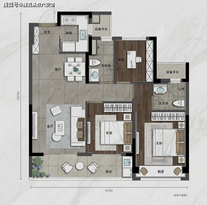 很明显,建面约99㎡的三房两厅两卫, 总价可控的同时,最大程度地保障了空间的舒适度。