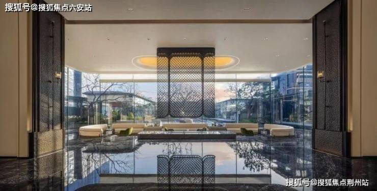 穿过华贵门廊,中央大堂的接待前场是贝母形地面铺转纹路,头顶是透光云石弧形穹顶,正前方是白金汉宫同款的皇室杈木影壁,接待台背部静置着“蓝翡翠”奢石背景屏风,以及与中心水院对应的“龙凤呈祥”造景,处处流露着优雅的艺术场域。