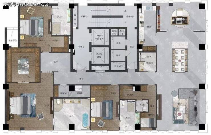 B户型图样板房装修展示:415方(现代轻奢)4室2厅五卫+保姆房