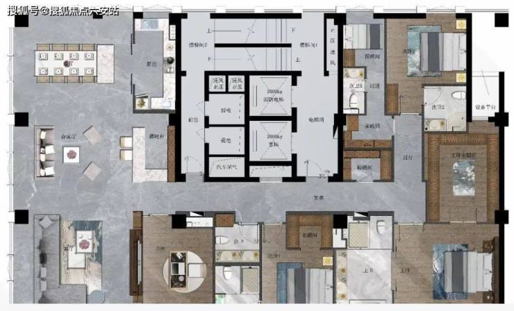 2、 2部私家电梯入户,1单元一户,增加家庭私密性和舒适性,不同其他家庭共享公区空间