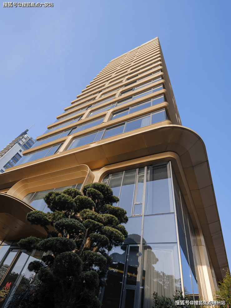 项目由亚洲建筑师协会金奖得主孟凡浩领衔的line+建筑事务所操刀,从钱塘江“潮涌”中提取设计灵感,外立面以金色铝板曲面线条与大尺度玻璃幕墙结合,形成如江水流动般的建筑韵律。