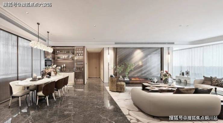 门厅仪序感浸润艺术灵感,奢石、工艺用材精细雕琢,入户尽显大宅品位。客厅双背景墙,奢石的自然纹理与木的温润触感,将海派摩登质感在精微细节处尽致表达,框定空间的美学欣赏焦点。