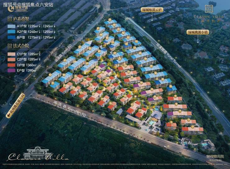 项目位于余杭区桃花源板块,占地约150亩,容积率低至1.01,是杭州近十年容积率最低的住宅项目之一。整个社区仅规划363席,包括99套法式合院和264套庐系叠墅,纯粹到没朋友。建筑风格上,它大胆地将浪漫法式合院与现代东方叠墅融合,东西方美学在这里碰撞出独特的火花。