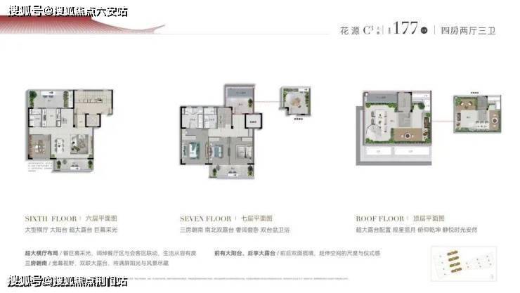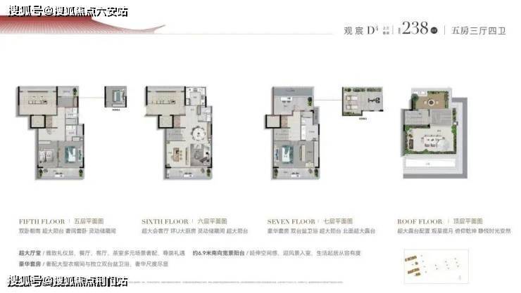 上叠拥有南北双露台,屋顶还有个超大露台可观星揽月,三房朝南、双联大阳台,主卧走入式衣柜、双台盆、双卫浴。