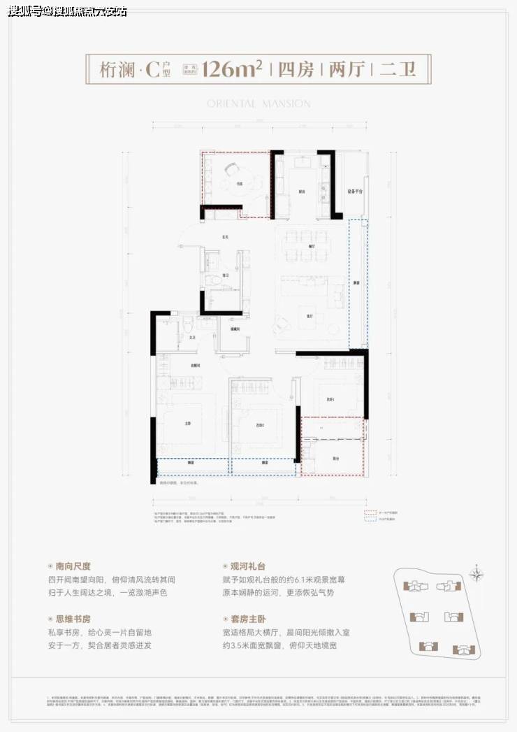 建面约126方户型:大边厅+南向的阳台,还有大套房,内含卫生间以及衣帽间,再加上独立的储藏室,收纳空间满分。