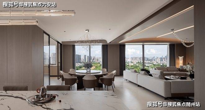 270°巨幕转角厅:18米南向面宽,LDK一体化方厅达120㎡,可容纳30人沙龙。