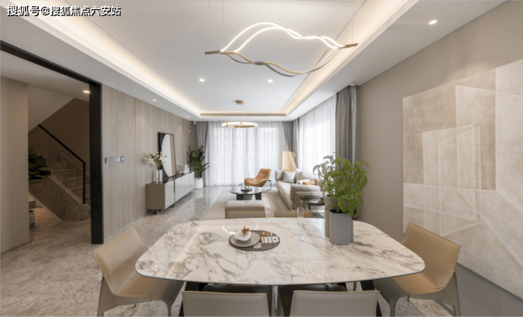 建筑外立面,四面皆为石材干挂,搭配铝板和大面积玻璃,窗墙比也高达60%,既标定了豪宅底色,更如同时装T台上的classic style,经典永不过时。