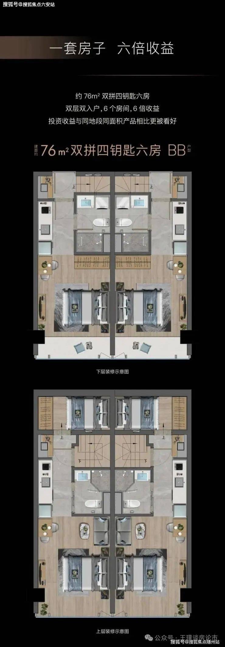 ▸ 76㎡轻奢套间:独立厨卫+全景落地窗,适合高端单身白领