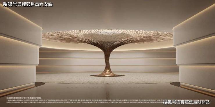 负一层多功能会所空间和中央车站相连接,以一颗造价百万的艺术造型的“黄金树”作为通往地下会所的空间过渡,与地上天光云廊的归家乔木相倒映,形成地面与地下的双归家仪式感与尊贵感。