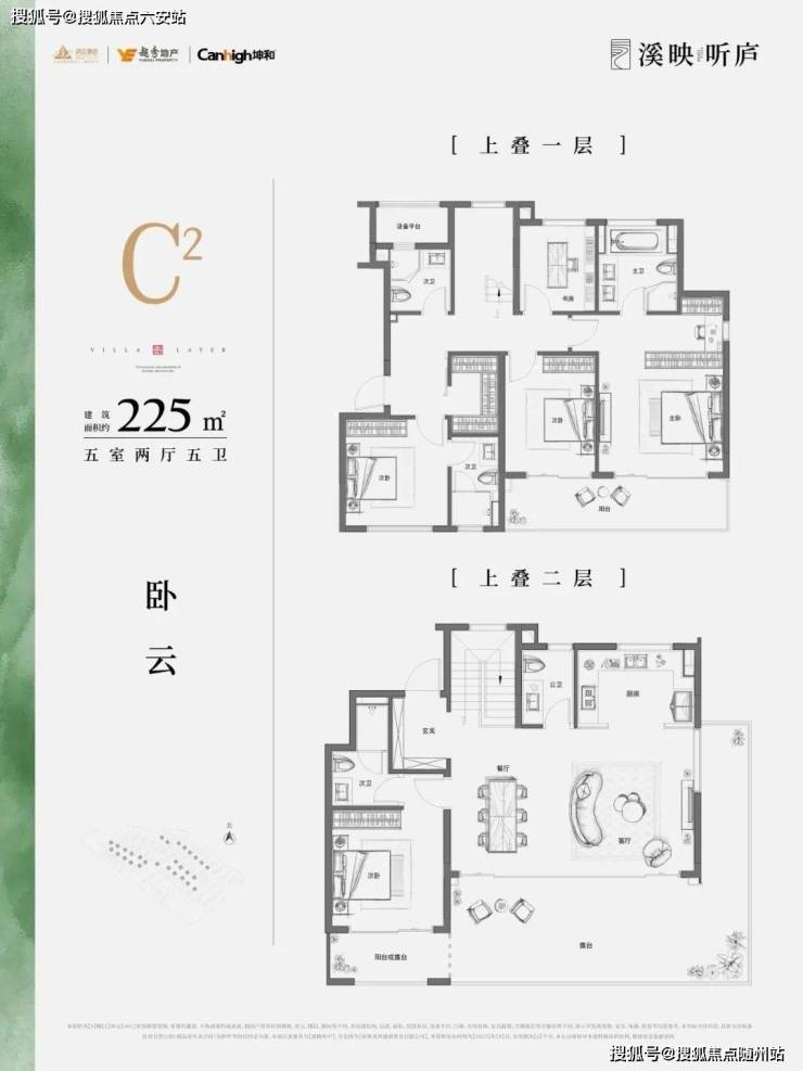 上叠主力户型建面约202-205-225方,全都是五房配置,基本总价在1000万以内。