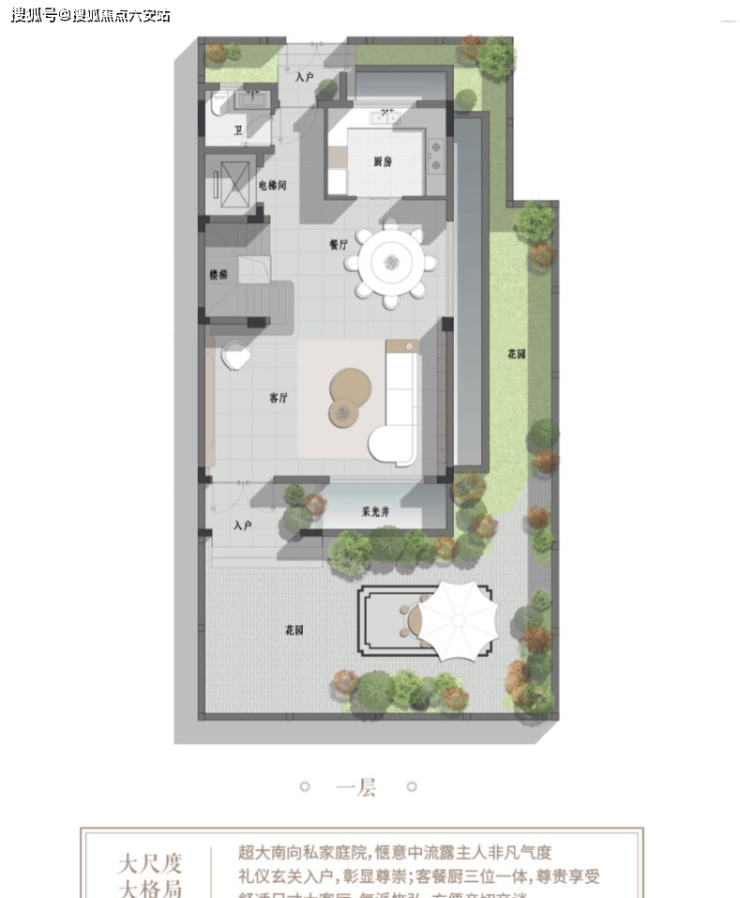• 私家庭院系统:50-300㎡南向庭院,搭配58-174㎡星空露台,实现四季景观收藏