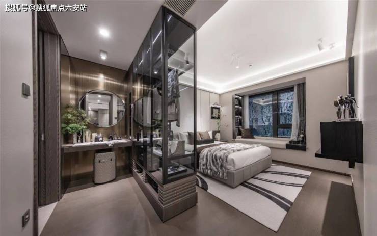 主卧套房面宽达约3.5米,冬日在景观飘窗上晒着太阳喝茶追剧,相当于多了一个独立的休息区。