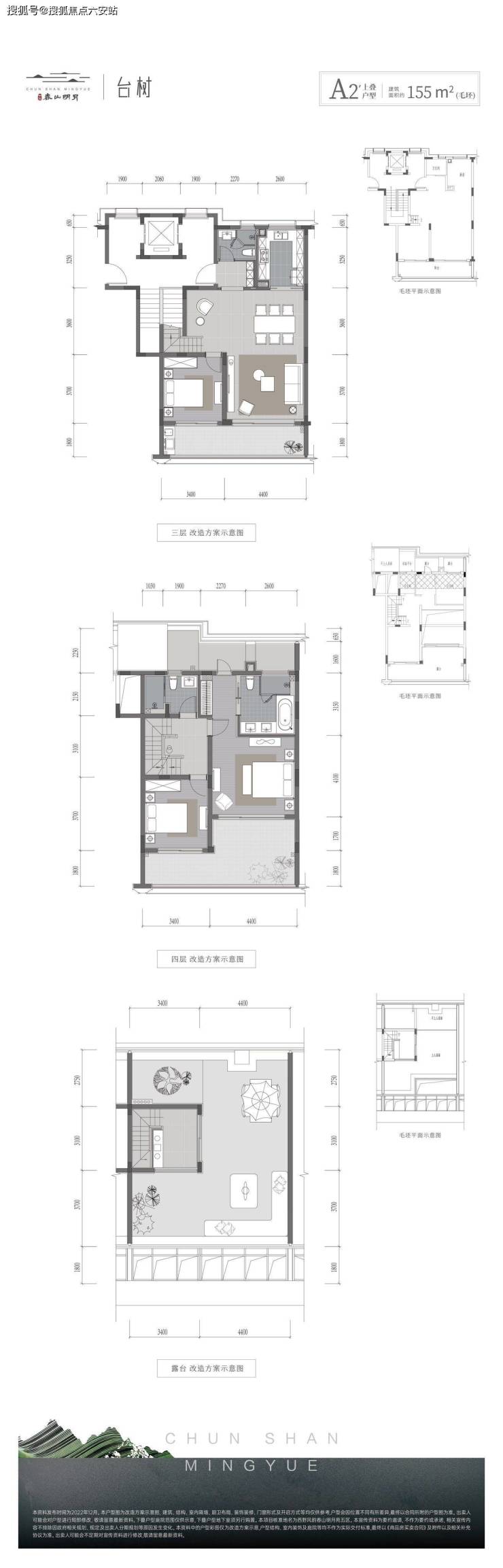 上叠:155-185㎡户型,赠送60㎡星空露台,5.6米挑高地下室可改造影音室或酒窖。