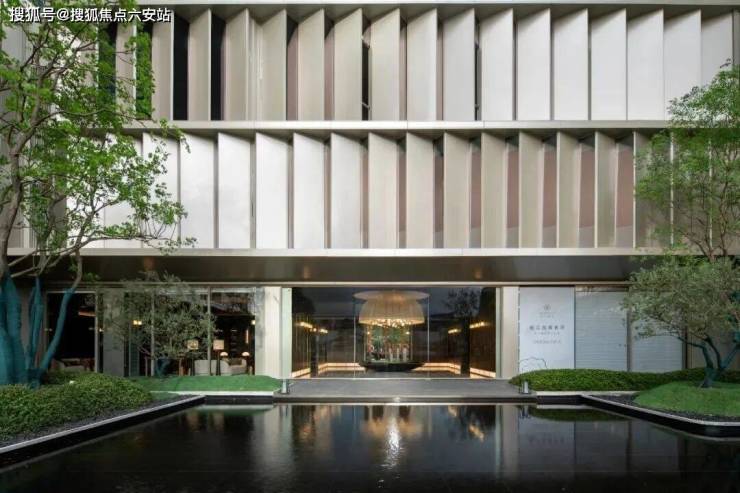 入户两侧设计禅意水系,寓意流水而兴;前厅中轴展开,巨幅琉璃质感屏风尽显尊崇;香槟金质感的龙鳞吊顶,寓意龙腾祥瑞,共同演绎东方观天地的大境哲学。建筑汲取宋风美学精髓,以对称设计、禅意水系、琉璃屏风等元素,构建"古而新"的现代东方意境。