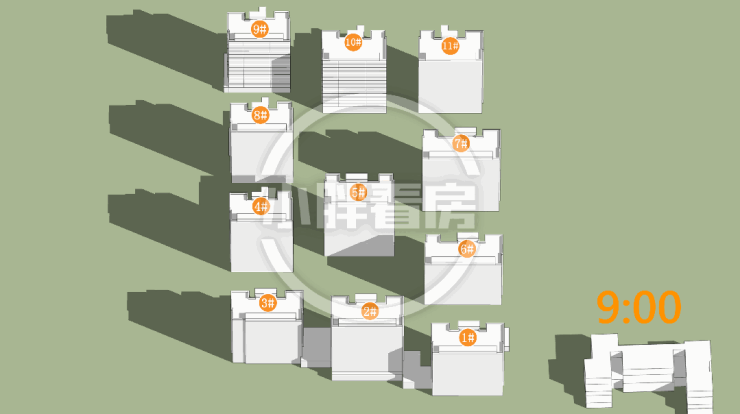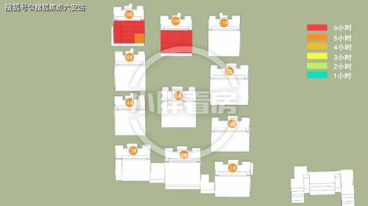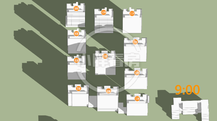 春秋季:9#采光优异几乎不存在遮挡。10#低层受遮挡。就具体遮挡时间而言,10#主要在下午受8#遮挡。