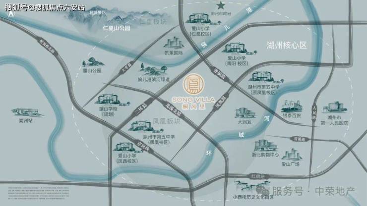 人文教育:爱山小学(青阳校区)、爱山小学(凤西校区)、爱山小学(仁皇校区)、第十二中学、第五中学(凤凰校区)、湖州市凤凰小学、南太湖新区腊山学校(规划)等书香环绕;