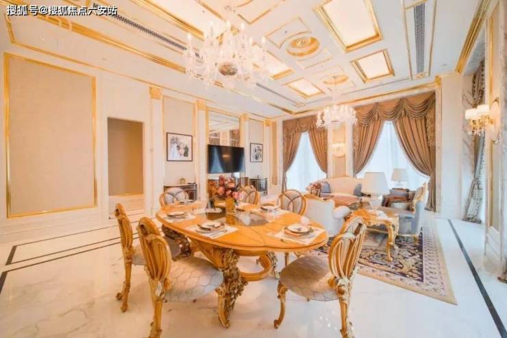 无论比例的和谐、材质的昂贵还是工艺的精度,都与欧美纯正的新古典顶豪相距甚远。比如,泥金吊顶涂的是漆,大花壁纸真的是“纸”