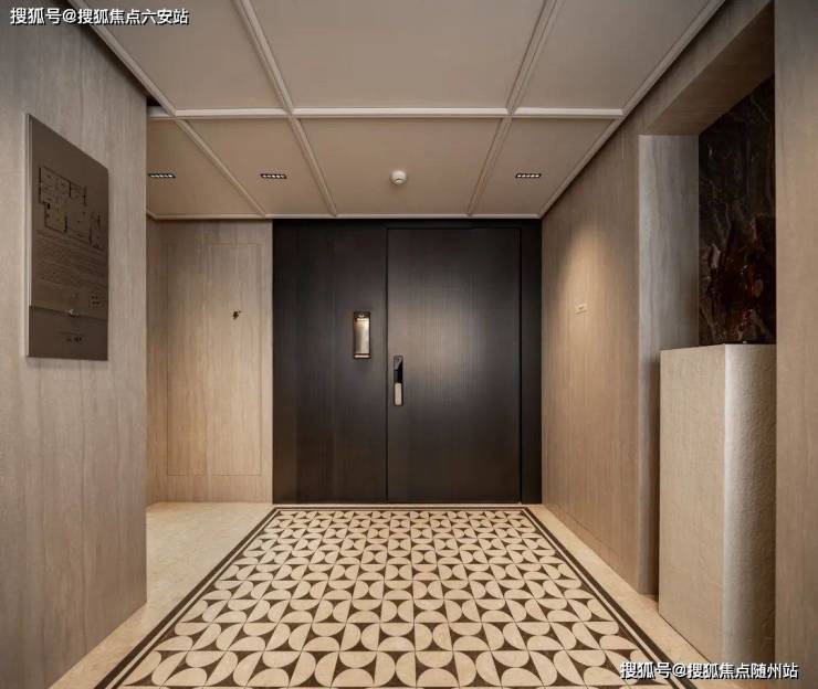 更为考究的是,巴黎蒙田大道,以激光蚀刻进香奈儿旗舰店青铜立面的山茶花,被创新性地蚀刻进杭州沄璟文的电梯门;入户门高定的“艺术壁龛门牌”,彰显独特的品位和身份。这些精致细节共同构筑了项目的高定基因,让建筑本身成为一件艺术品。