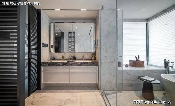 主卧还有日本皇家特供的伊奈智能马桶,沄璟主卫做了杜拉维特双台盆,再铺上威尼斯棕的台面,干净整洁的同时,也有美学视觉体验。