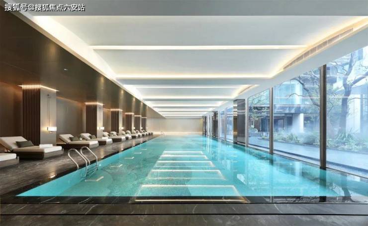 水院另一侧,是全落地玻璃分割的无界恒温泳池与多功能健身房。
