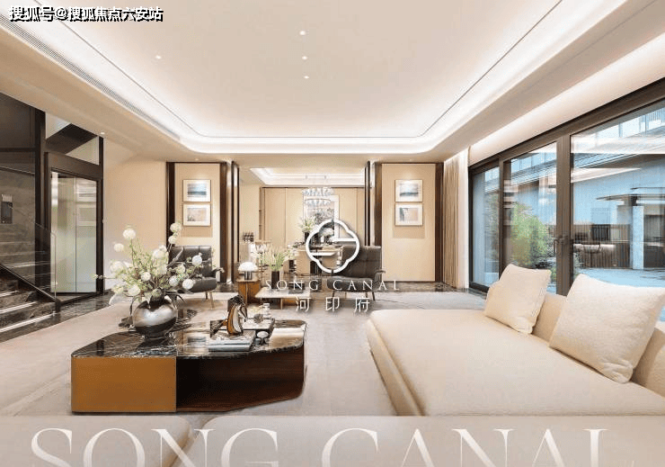 项目以现代审美和设计手法,提取中式美学造极时代的宋式美学,排屋、叠墅立面首层采用大面积淳如玉釉的白色石材,二层及以上立面以大量金色勾边营造,古铜深色作为檐口插色低调内敛而富有华贵意蕴建筑。