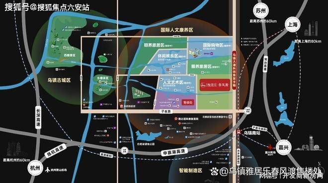 乌镇,与苏州、杭州相距约60公里,与上海相隔约80公里,地处江浙沪黄金地带,坐拥G60科创走廊与嘉湖一体化先行区的战略优势,尽享长三角一体化发展的澎湃动力。在嘉兴市2035年规划蓝图中,乌镇的发展定位再度升级。项目傲立于乌镇国际创新区(规划面积9平方公里)核心区域,子夜路创新中轴与乌镇大道科创黄金双轴交汇点。华为5G、中电科、航天北斗、“乌镇之光”超算中心等科技创新巨头汇聚,吸引全球高端精英人才。乌镇南站的建设,更是加速了交通网络的升级与板块的崛起,未来这里将成为乌镇发展的璀璨明珠。