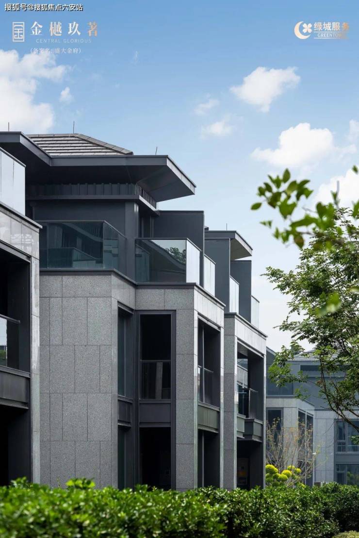 珍珠蓝石材干挂立面+大玻面 造价更高、颜值更佳,高度契合排屋高端气质。