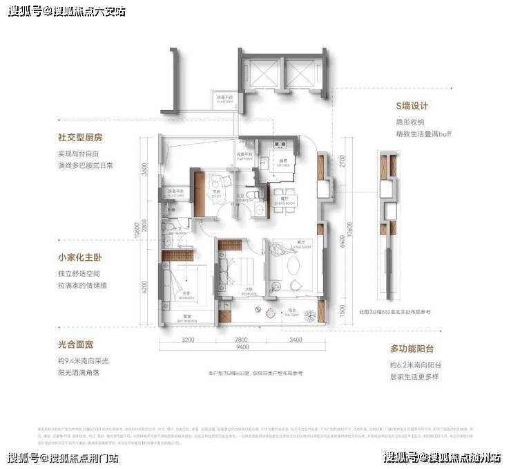 户型方正,没什么浪费面积,虽然是中间套设计,但做到了全明户型,通风效果好;南向三开间,双联阳台+飘窗,南向采光充足,阳光满堂;超配S墙,隐藏收纳柜,让小家越住越大,可以说杭州少见。🔻售楼热线:☎ 400 832 8823「售楼处」☎〢网上售楼中心〢🔻
