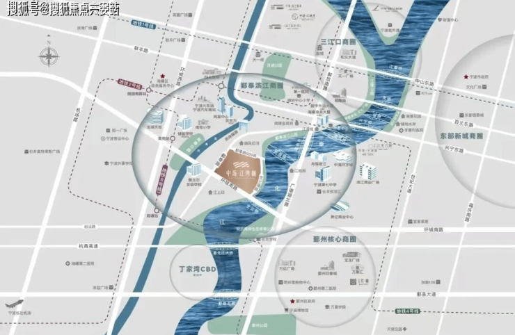项目位于宁波主城区,接壤各大主流商圈,是城市核心区的优质地块。作为鄞奉⽚区临江的最后⼀宗宅地,且处于S型绝美江湾, 本案拥有城市稀缺顶级的江景资源。