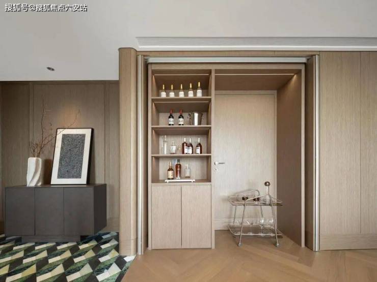 人生进入巅峰时刻,往往也需要宁静之地,沉思其中回归静谧的自在。在静谧私域中,一处可开可合的隐藏式水吧台,可以藏纳各式美酒,夜幕归来时,随手倒一杯小酌,享受心绪自在。这是独属于你的微醺时光,更是真正回归自我的珍贵时刻。