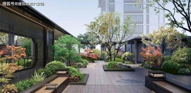 比如这一次的“建发式”大门一如既往,南北地块做了双大门设计,门头宽度达到约61米(含景墙)。入户做足了仪式感:重檐悬山式门楼、芝麻黑石材地雕、“鱼跃龙门”御道,两侧伫立着石狮、影壁、跌水、绿岛......还有两株精挑细选寓意“财富与健康”的罗汉松。