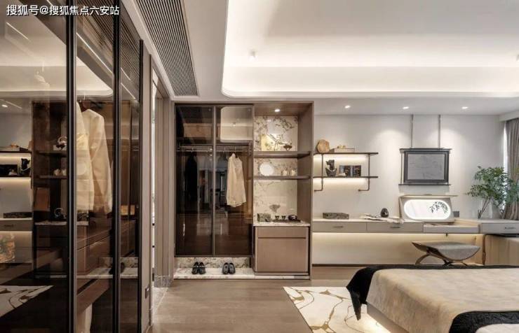 主卧里的壁挂智能马桶更是把豪奢酒店里的配置搬到了家里。镜柜里也是玲琅满目的小格子,以前也见不着。主卧的地板人字拼法,也是再尊贵了一把。建发的装修理念就是 “人无我有,人有我优”。