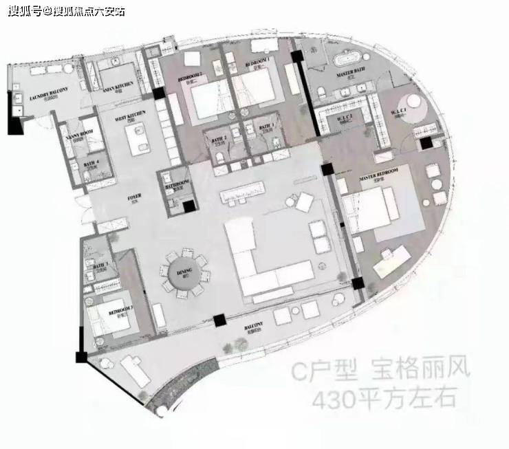拥有270°的风景是怎样的体验?最小阳台也超11米长;最大阳台在东边套,近17米长。主流进深约2米,最深处约3.5米。这约30㎡的阳台,完全媲美当年蓝色钱江一线江景大宅17米长的传奇阳台。每个阳台均一半幕墙封闭,一半敞开,既舒爽透气又可避风寒。