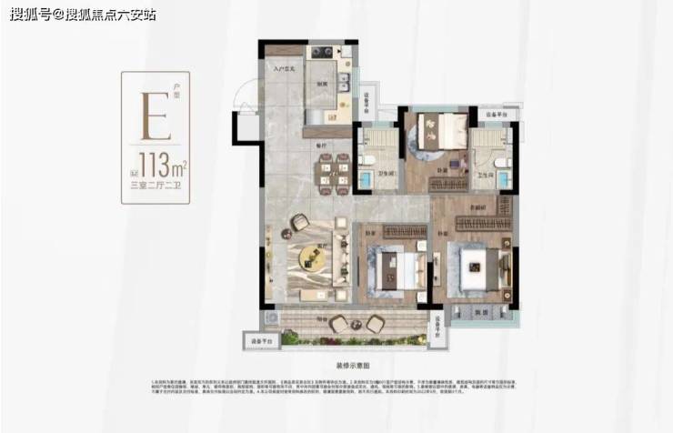 户型面积:75(2居)-89(3居)-105(3居)-113(3居) ㎡
