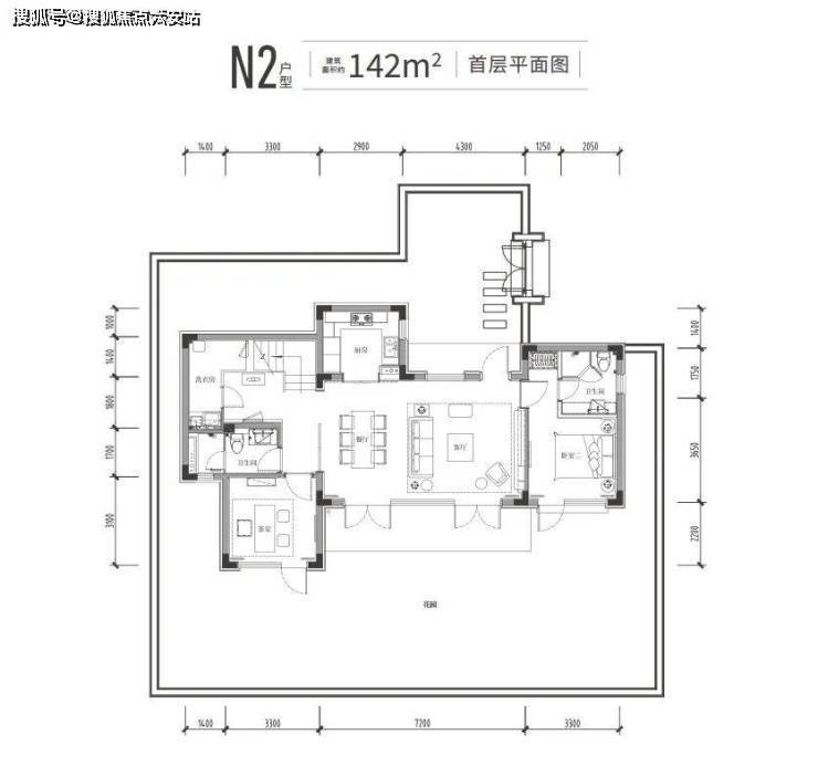 142㎡户型为例,面宽约15.2米,标准4房4卫。一楼是约7.2米长的双面采光大横厅,除了老人套房,还有个向院子伸出的“X空间”。它既能用作茶室、棋牌房,也能成为私密的客卧。拥有两个套房,主卧还是带南向独立衣帽间+带浴缸卫生间+露台“满配套房”!无论采光还是实用性,都碾压普通合院。