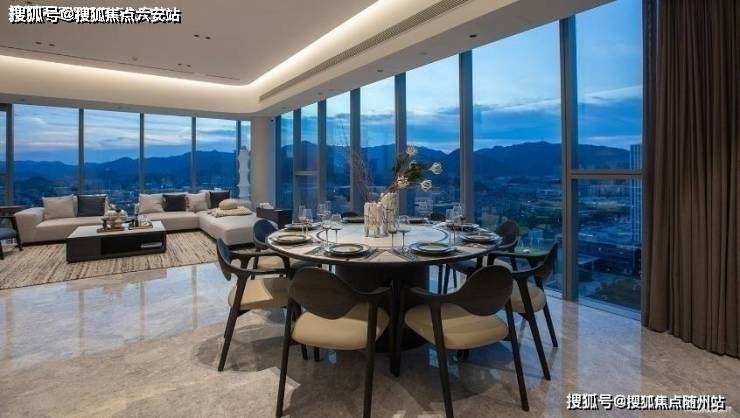 创新性采用三面玻璃幕墙体系,打造高达270度的环幕视野,让客厅、餐厅、卧室等多个空间皆能直面山景,引景入室。