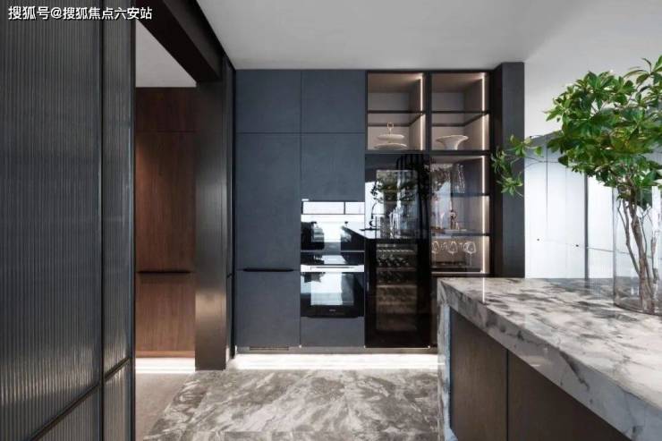 德国柏丽nobilia整体厨房,烤漆门板的选型为杭州壹号院量身定制,仿岩板色与深色木纹的搭配相得益彰,并加上柏丽的深色玻璃吊柜。定制设计中西双厨或开放式的社交厨房。巧思的细节设计,不论家庭互动还是会客聚友,都可以增加互动,社交无阻。