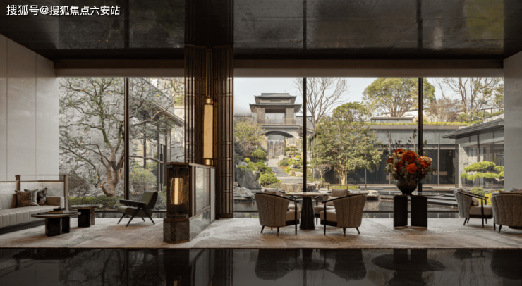 建面约2000方下沉式会所,有恒温泳池、健身房、私宴厅、茶室等功能空间,全都环绕中央水庭而设,风景旖旎。