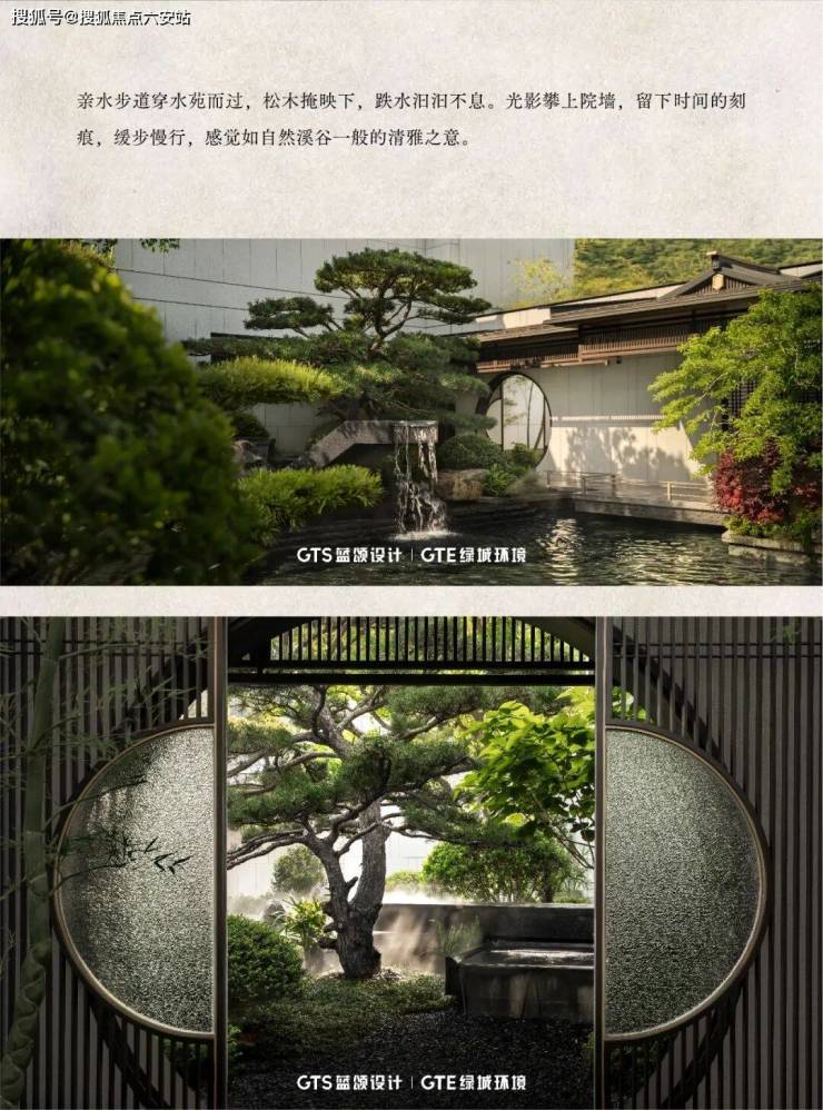 玺园·香璋景观由绿城环境宋淑华设计,以浙派园林风格为基底,汲取《溪山行旅图》《西园雅集图》灵感,以宋代长流涧串联整个景观轴线,并以绿植、景石等风景要素点缀,给人“如在画中游”的情景体验。