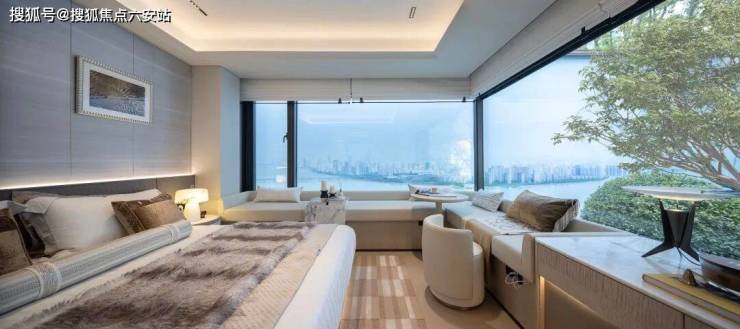 当你立于客厅,窗外的景色仿佛被装入一个巨大的天然画框,是传统户型无法赋予的奢侈。更难得的是,主卧采用270°转角飘窗设计,不仅让采光达到极致,未来还有可能实现"躺在床上观江景"的生活想象,做到了真正意义上的景观私有化。