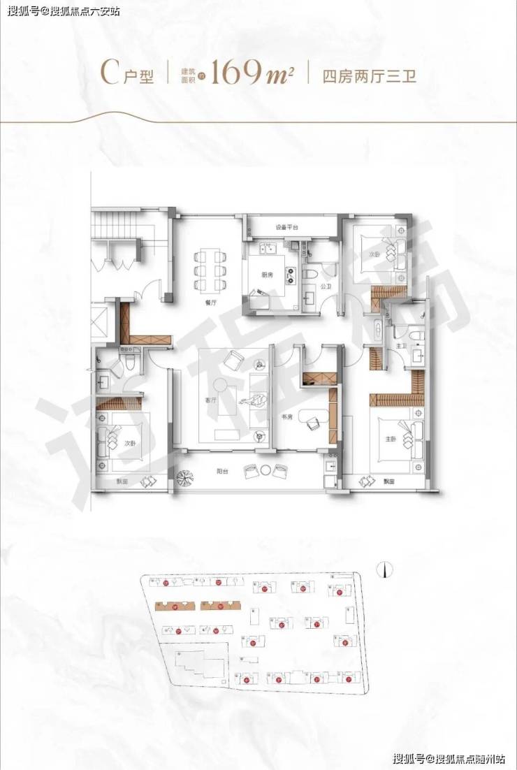 如果你想要舒适度进阶,也可以考虑边套建面约130方四房两厅两卫户型。