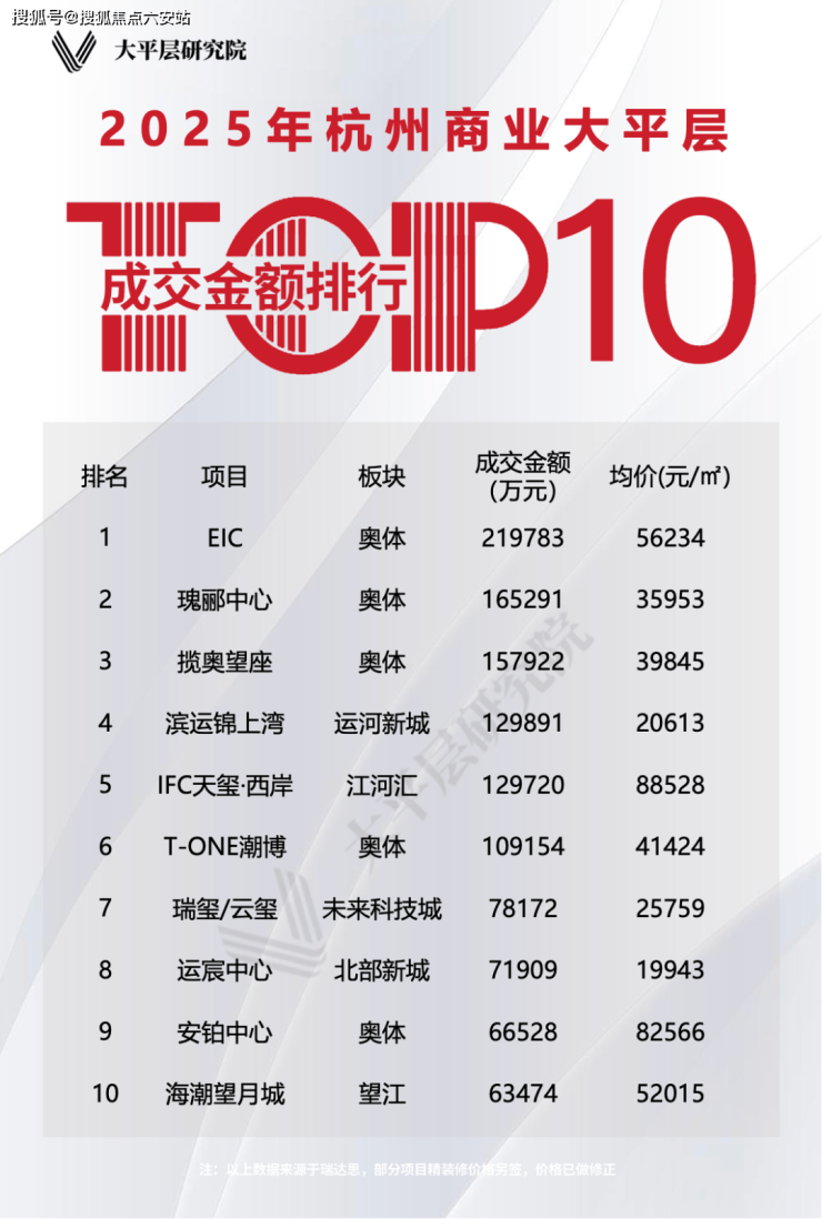 其中最瞩目的当属EIC,EIC的大平层(建面约)375㎡送(建面约)107㎡,得房率约93%,2025年卖了101套,成交金额近22亿,卖到了全杭州商业大平层销售额的第一名,也是5万+大平层的销售套数、面积、金额三冠王!它的写字楼也卖得很火,还创下了今年杭州最大的2.5万方的单笔租赁。